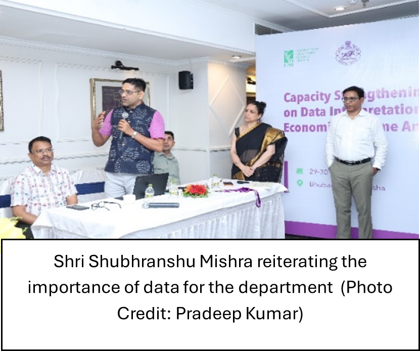The training equipped participants with practical skills in survey design, digital data collection using Kobo Toolbox and ODK, and data management and analysis in Stata and Excel. Officers learned to clean, analyze, and visualize field datasets—such as crop insurance records from Boudh district—identifying trends, patterns, and relationships. Modules on research writing and mixed-methods analysis helped integrate qualitative and quantitative insights for evidence-based decision-making. Through live demonstrations, group exercises, and case discussions, participants gained hands-on experience enabling them to monitor programs effectively, interpret data accurately, and support the department in evidence-based policy formulation.