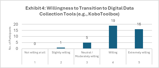 - 85.4% expressed willingness to adopt digital tools like Kobo Toolbox for field operations